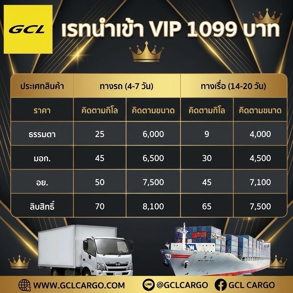 บริการขนส่งนำเข้าสินค้าจีนมืออาชีพ ไว้ใจ GCL CARGO นำเข้าแบบมีเอกสารถูกต้อง มี QC จากจีน สินค้าตรงปก จะนำเข้าน้อยหรือมาก GCL CARGO พร้อมร่วมเดินทางไปกับคุณ บริการลูกค้า ในมาตราฐานเดียวกัน